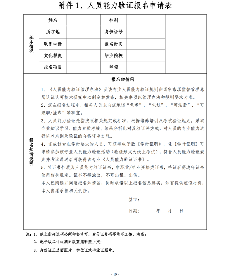 国家市场监督管理总局认证认可技术研究中心人员能力验证报名表.rar